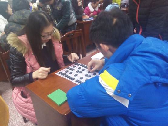 开幕式中,首先是学生处处长陈彪致辞,随后团委书记张鹏辉发表讲话,裁判长霍嘉豪宣布本次活动的比赛规则并宣誓,最后团总支书记赵学琴宣布:棋王争霸赛正式开始。比赛有条不紊地进行着,参赛人员在进行着激烈地角逐,个个参赛者都面带着一副淡定与沉稳。前来观看地同学们面部表情比较丰富,一会惊讶于参赛人员的聪明智慧,一会又为参赛人员误走一步棋而眉头紧锁,充分表现出自己也是一个棋艺爱好者。经过一轮轮的角逐,最终筛选出了下午的复赛人员,想必下午的比赛更让人期待,智者与智者的较量!