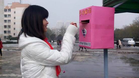 此次活动主要包括“Ta写祝福我来”“我把祝福带给Ta”“我的祝福大家知”三部分,旨在感恩节来临之际唤醒同学们的感恩意识,重现温暖瞬间。让同学们知道感恩节了解感恩节,在学校内营造感恩氛围,将感恩精神传递到校园的每一个人。活动样式以邮局的形式呈现,活动现场划分为登记处、填写处、投递处和审核分组处四大部分。对于此次感恩节的活动,同学们都展现出了极大的热情。志愿者们全天轮流值班,让过往的学生在便利贴上写下自己的感恩祝福语,并将其贴在宣传板上,志愿者们冒着寒风让同学们的感激之情随风飘动。很多发自肺腑的留言经过“邮递员”的传递,最终被老师、同学们看到,令人感动不已。